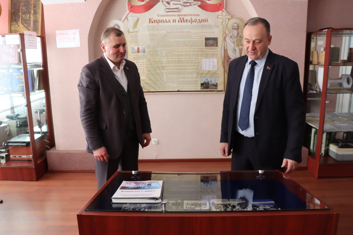 ⚡️Александр Павлович – уроженец д. Камень, в 1980 году окончил эту школу. Ему было интересно посмотреть, как она изменилась. 🔵Александру Солоневичу организовали экскурсию по школе. Директор Вячеслав Богатко показал гостю музей развития образования Пинского района, классы, где занимаются ребята, познакомил со стендом, на котором размещены фото выпускников – участников Афганской войны, а также с уголком, посвященным Холокосту в годы Великой Отечественной войны на территории Погоста-Загородского и Беларуси в целом. 📌В 2026-м учреждению образования исполняется 60 лет, 35 – со дня присвоения имени славянских просветителей Кирилла и Мефодия. Вопросы празднования этих дат также обсуждались в ходе встречи. @Пинский Вестник 📱Ютуб 📱ВК 📱ИНСТАГРАМ 📱ОК 📱ФЕЙСБУК 📱ТИК ТОК Прислать новость