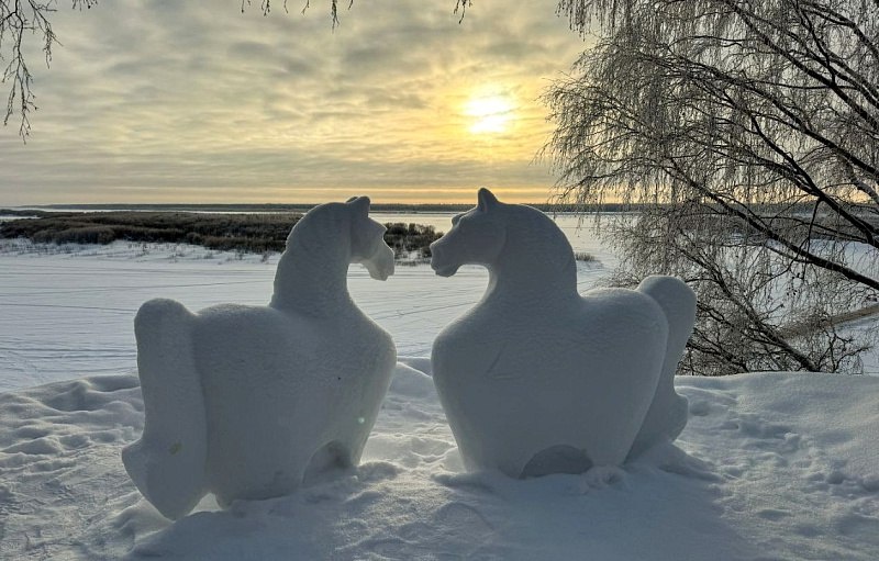 В Верхней Тойме появились снежные влюблённые лошади