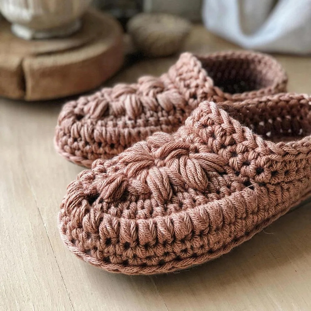 Эта схема подходит для среднего размера ноги (женская обувь примерно 36–38). Регулируйте количество петель и рядов в зависимости от желаемого размера.