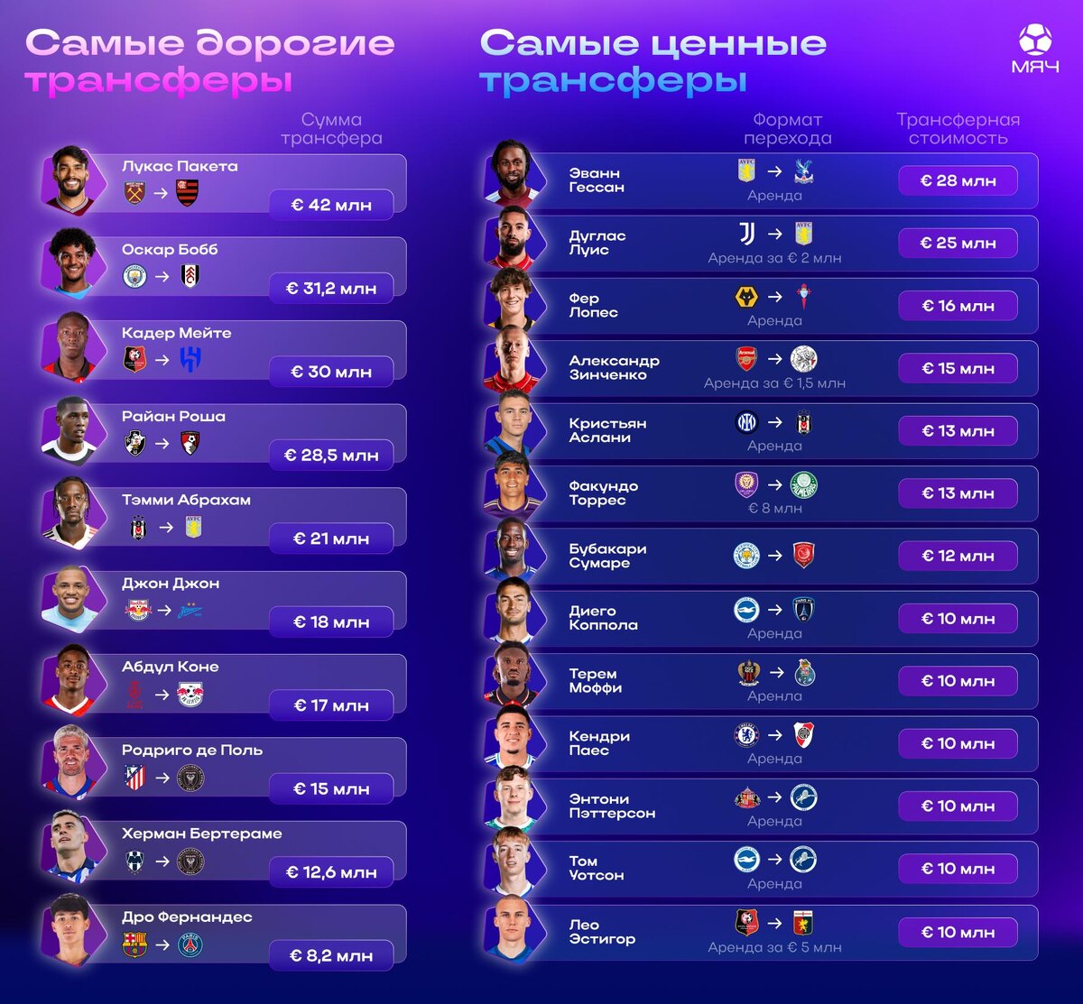 ». Обзор трансферов №34 🔝Топ-трансферы: Коне 💣 Неочевидная бомба: Роша, Абрахам, Фернандес, Зинченко, Эстигор 🛒 Ну, перешел и перешел: Джон, Бертераме, Гессан, Лопес, Аслани, Торрес, Сумаре, Коппола, Моффи, Паес, Патерсон, Уотсон, Де Поль ❓ Есть вопросики: Пакета, Мейте ❌ Потенциальный провал: Бобб, Луис А как оцениваете эти трансферы вы? И кого к какой категории отнесете? @myach