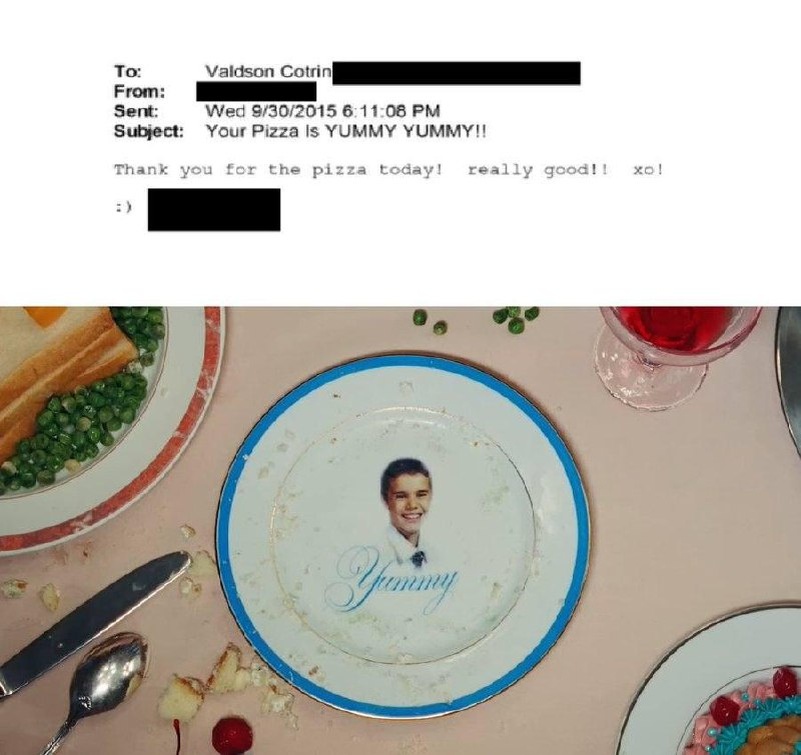 Самое очевидное все уже обмусолили, однако некоторые трюфели спрятались на большой глубине – их откопали в англоязычном экс-твиттере, а мы несем вам. • В чат внезапно ворвался многострадальный Джастин Бибер. Конспирологи считали, что его клип на песню «Yummy» – это скрытый дисс на Эпштейна и его педодрузей. Теперь версия вроде как подтвердилась. Основания – один из файлов, где неназванный гость хвалит пиццу («Your pizza is YUMMY YUMMY») и вместе с письмом прикладывает фото с маленьким Джастином. Слово «пицца» вообще часто употребляется в файлах, поэтому есть теория, что используется оно как часть какого-то педошифра (Эпштейн всех зовет на пиццу, просит срочно выслать меню пиццерии и так далее). Комментаторы уже окрестили происходящее «пиццагейтом». • То, что Стивен Хокинг был на острове Эпштейна и участвовал в оргиях с несовершеннолетними, слили еще пару лет назад, но сейчас пошла новая волна обсуждения этого удивительного факта. Приняли волевое решение приобщить эту новость к свежем