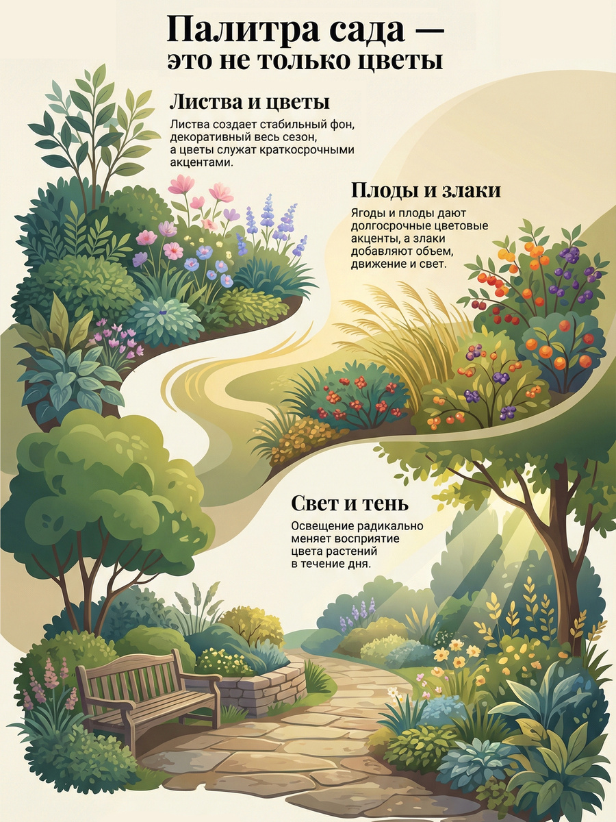 Сохраняйте и отправляйте друзьям: пригодится при благоустройстве сада 📌 Цвет в саду работает тише, чем форма или архитектура, но именно он во многом задаёт общее состояние пространства. Через цвет мы чувствуем глубину, ритм и настроение сада Часто именно с таких наблюдений начинается интерес к саду как к целостной системе. Сначала внимание к деталям и нюансам, затем желание понять, как выстраивается пространство и какие принципы за этим стоят. Если вы давно задумываетесь о создании собственного сада или о том, чтобы связать себя с ландшафтным дизайном, но не понимаете, с чего начать и где учиться, мы проводим День открытых дверей Garden Group. Это возможность посмотреть, как устроено профессиональное обучение, какие навыки действительно нужны и подходит ли вам этот путь 📆 5 февраля, 10:00 (МСК) Сразу после регистрации (https://garden-group.online/reg_dod_2026?utm_medium=post&utm_source=dzen&utm_campaign=dod&utm_content=0202) вы получите «Цветочный гид» — каталог, который погружает в
