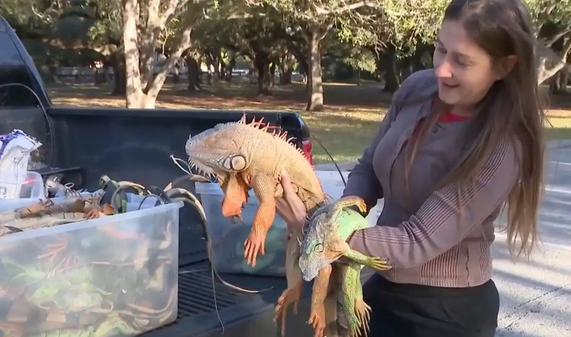 Для жителей Флориды игуаны — не диковинка, а аналог наших голубей: ящеры широко распространены в южной части штата. Обычно рептилии спокойно отдыхают на ветках деревьев, но сейчас они сыплются оттуда как град. Все из-за ледяного ветра, проникшего на юг США. Во Флориде были зарегистрированы рекордно низкие для штата температуры: столбик термометра опустился до –4°C. Для этого региона это самый низкий показатель с 1923 года: обычно в феврале температура во Флориде не опускается ниже 12°C. И если люди бурча просто могут накинуть куртки, то игуаны буквально цепенеют из-за холода. После хладнокровные рептилии попросту падают с веток деревьев. Так, Джессика Килгор, владелица компании Iguana Solutions, занимающейся удалением инвазивных видов, рассказала телеканалу WPLG 10, что за время похолодания собрала «сотни килограммов» свалившихся игуан — как живых, так и мертвых. Обычно жителям Флориды запрещено брать игуан в руки. Но эта зима стала исключением, и Комиссия по сохранению рыбы и дикой пр