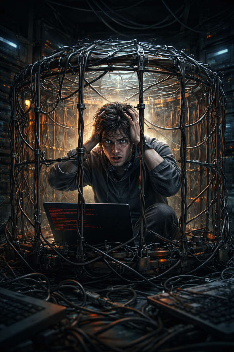 Индустрия, построенная на идее упрощать, превратилась в систему, которая каждый год становится сложнее, тяжелее, перегруженнее и необратимо токсичнее. Кодовое болото, фреймворк-джунгли, бесконечные обновления, нескончаемый перформанс-гонор… Всё это рикошетом ударило по тем, кто должен был управлять хаосом - разработчикам.
