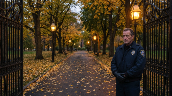 Геннадий закрыл ворота в девять сорок семь. Тринадцать минут до конца смены. Октябрьский ветер гнал по аллеям жёлтые листья, фонари качались, и тени от клёнов ползли по асфальту, как живые.