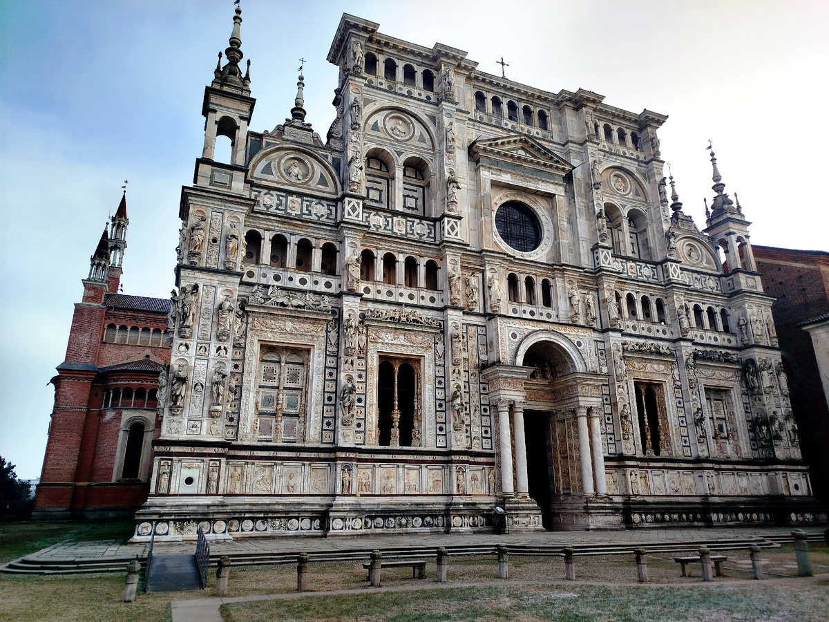 Чертоза-ди-Павия (Certosa di Pavia). Этот монастырский комплекс, расположенный в нескольких километрах к северу от города, о начали строить в 1396 году по приказу Джан Галеаццо Висконти, все того же представителя семьи Висконти, как фамильный мавзолей миланских герцогов. Но по совместительству объект начал функционировать как монастырь.