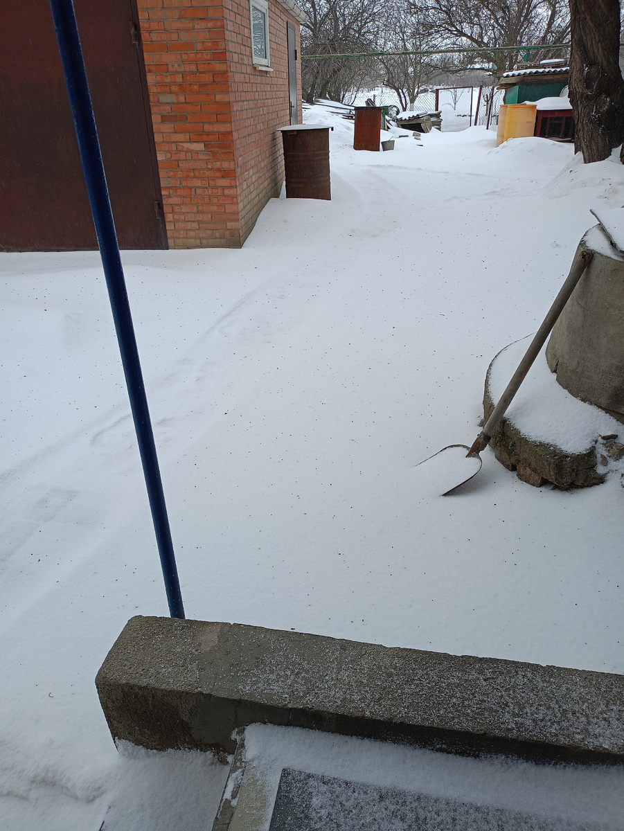 Наш двор просто замело снегом. До этого уже все почти расстаяло, а теперь белым - бело...