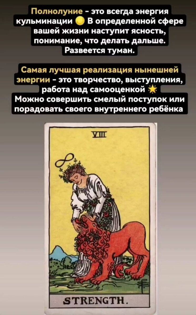 ! Полнолуние сейчас в самом разгаре 🔥 Многие его уже ощутили, особенно если в натальной карте есть планеты / куспиды угловых домов (Асц/Дсц/IC,MC) в районе 13 градуса Льва♌️ В это время мы видим ситуации максимально ясно, снимаются розовые очки, раскрываются тайны (особенно в любовных отношениях, с детьми). Работает энергия максимальной душевной откровенности ❤️🩹, когда ничего невозможно скрыть. И Полнолуние часто подталкивает к принятию жизненно важных решений, случаются осознания. Может действительно штормить по теме отношений, риск расставания повышенный, но и страстные искренние признания тоже будут чаще свершаться. Часть людей уже чувствует мощный прилив сил, энергии, воодушевление и вдохновение ☀️ Энергия Льва связана с праздниками, творчеством🎬, сценой, сердечностью, щедростью, подарками, комплиментами - вполне естественна сейчас тяга к таким вещам. В минусе, другая часть людей ощущает упадок сил, удар по самооценке и может даже заболеть... все же Полнолуние на нас де