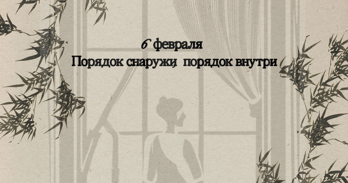 6 февраля. «Как и дом, разум и сердце тоже периодически нуждаются в уборке. Полезно немного подвигаться, чтобы развеяться.»