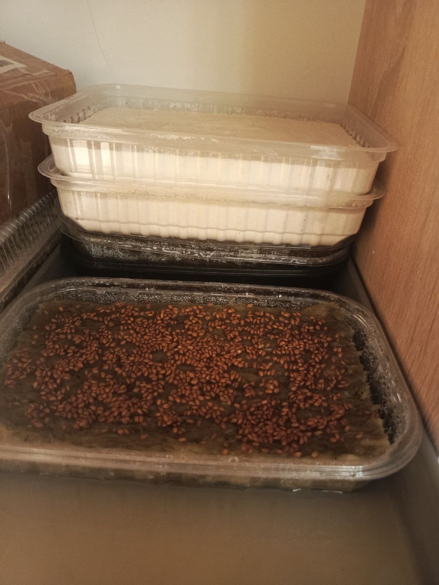 ! Я, конечно, поставила горох на проращивание, но все же подстраховалась. Тут два вида редиса (Санго и Красный Коралл) и кресс-салат. Очень надеюсь, что погодные условия будут нам благоволить и все вырастит в срок.