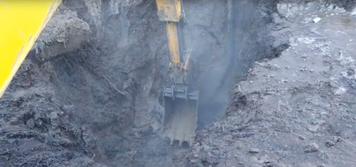 На главной улице Железногорска Курской области возле дома №29 сегодня утром неожиданно появился гейзер. Фонтан холодной воды сотрудники "Горводоканала" постарались перекрыть ковшом экскаватора. Впрочем, такой нехитрый способ был избран исключительно в качестве меры экстренного реагирования, дабы вода не выплёскивалась из раскопанной ямы на дорогу и моментально образующийся лёд не не усложнял и без того нелёгкую ситуацию на улице Ленина. Специалисты дождались перекрытия водоснабжения водных магистралей района и приступили к ликвидации порыва. Дожидаться окончания работ с нетерпением будут и в 12 многоквартирных домах по чётной стороне улице, в кафе "Крона", в детской больнице "Зорюшка" и в управлении Михайловского ГОКА, где временно, надеемся, отсутствует холодное водоснабжение. © фото Zhel.City|Железногорск