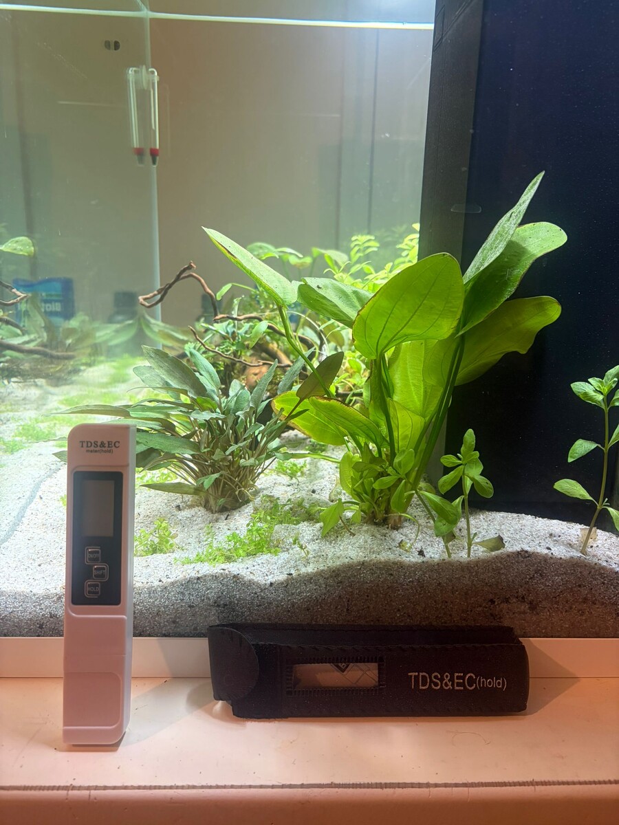 Она здесь настолько жёсткая, что накипь на чайнике образуется быстрее, чем я успеваю допить кофе. Но если чайник можно почистить лимонной кислотой, то с будущими обитателями моего аквариума такой номер не пройдет. Я готовлюсь к приему неонов. Эти ребята — истинные эстеты, им нужна мягкая, слегка кислая вода. А что у меня сейчас в кране? Мои замеры повергли меня в легкий шок. Для инспекции я купила TDS-метр. Для тех, кто не в курсе: этот прибор показывает количество растворенных в воде примесей (минералов, солей, металлов). Датчик пропускает через воду слабый ток и выдает результат в PPM (частицах на миллион). В школе я терпеть не могла химию и едва вытягивала на тройку. Кто бы мне тогда сказал, что в 2026 году я буду с азартом изучать состав воды и ждать посылку с фильтрами, как новую сумочку... Жизнь — странная штука! Чтобы окончательно убедиться в необходимости перемен, я провела следственный эксперимент. Три источника воды, один датчик и три совершенно разных результата. Откуда взял