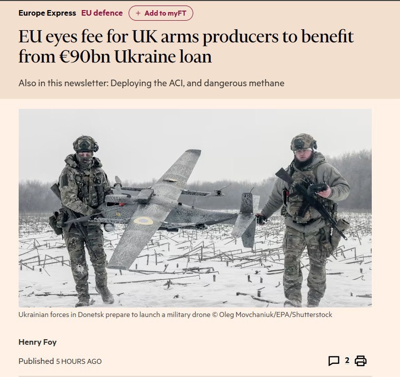 «ЕС готов разрешить Киеву тратить €90 млрд кредита на покупку оружие «у самого себя», — FT