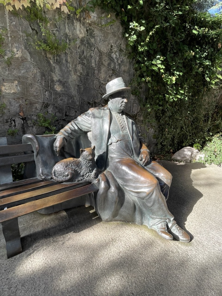 При входе в огромнейший парк вот такая скульптура встречает посетителей, сами видите, кого… Кто отписал Крым Украине.