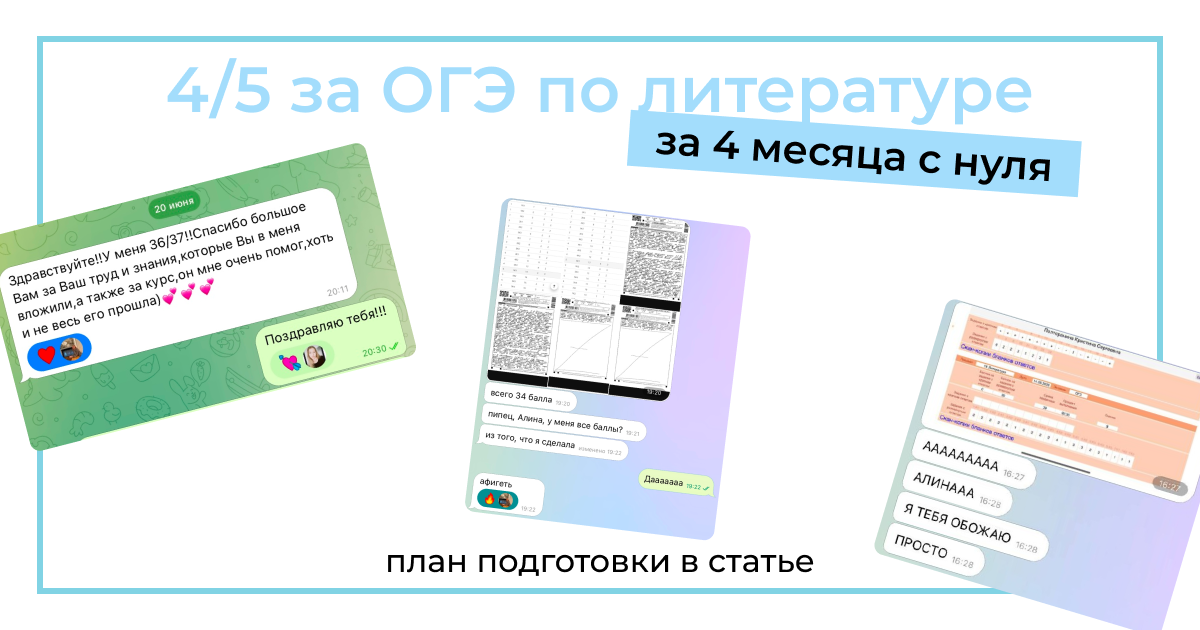 Всем привет! Меня зовут Алина, я репетитор для гуманитариев. Сегодня я расскажу, что делать в оставшиеся 4 месяца до экзамена, чтобы подготовиться на оценку 4/5, даже если вы ещё не готовились. Экзамен состоит из 5 заданий, все они - в формате сочинений. 4 маленьких (примерно 3-5 предложений) и одно большое (тут уже нужно написать не менее 150 слов). Требования к маленьким сочинениям примерно одинаковые: Требования к большому сочинению более жёсткие: Чтобы успешно сдать экзамен, вам нужно: Я предлагаю вам следующий план. Он включает в себе все навыки и знания, которые я перечисляла выше. При этом не нужно будет заниматься каждый день. Будет достаточно 2 занятия в неделю по 2-2,5 часа. Чтобы сэкономить время на подготовке, я убрала из плана изучение поэзии по авторам и заменила их на уроки по анализу стихотворений, где как раз можно изучить особенности творчества самых популярных поэтов. Листайте карусель. Стоимость участия в курсе: 5000 рублей/месяц. Присоединиться можно до 28 февраля