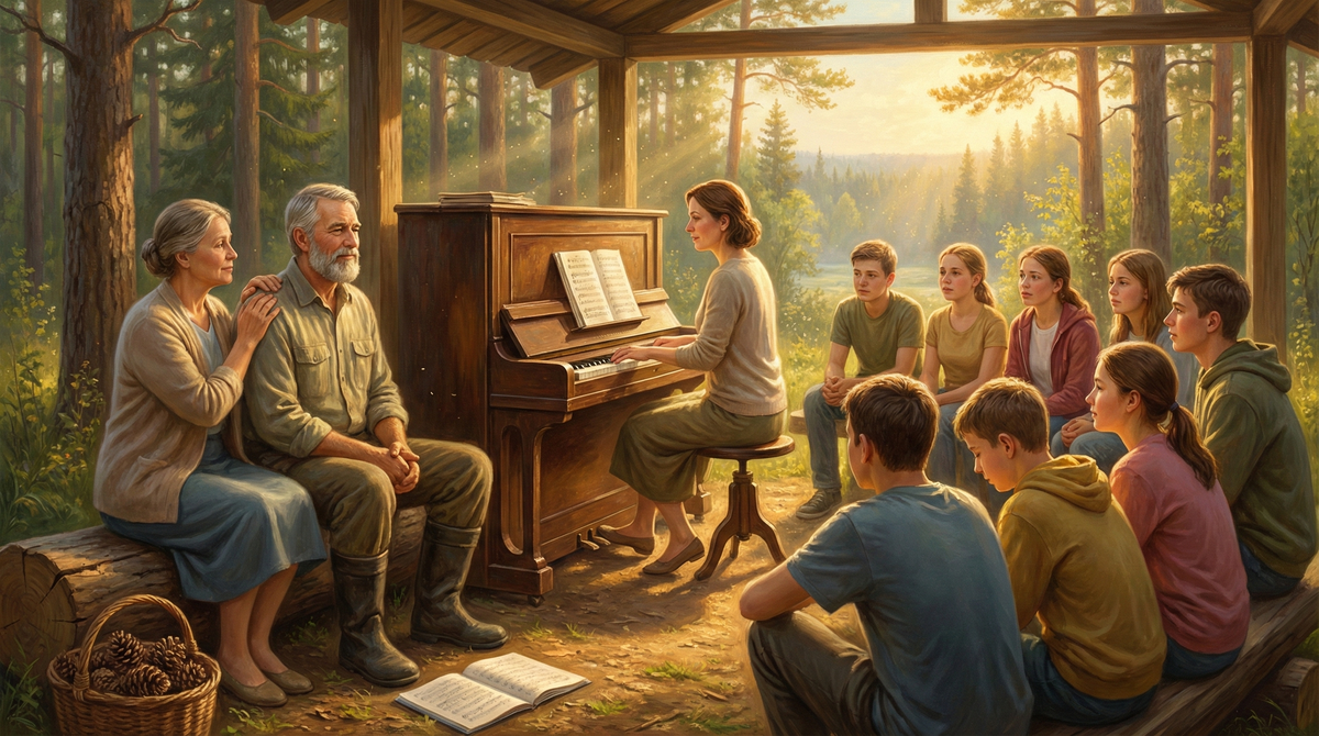 Лидия теперь ведёт занятия по медитации. Настя проводит йогу в лесу. Катя даёт концерты - прямо во дворе кружка. Иногда играет Шуберта. Алексей всегда слушает. Молча. С благодарностью.