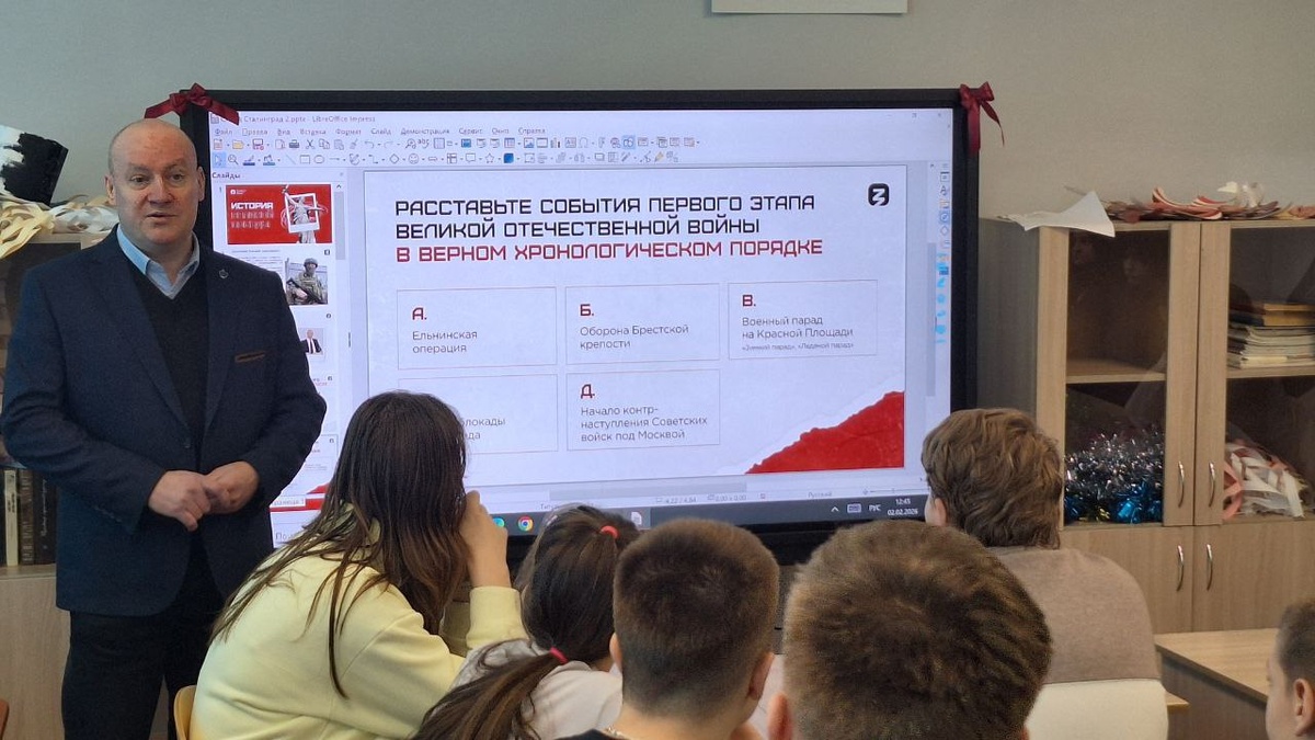 В Пскове при поддержке «Единой России» в школе № 9 состоялся особенный урок истории, который надолго запомнится учащимся Ветеран специальной военной операции, лектор Российского общества «Знание», эксперт партийного проекта «Историческая память» Евгений Дорошенко провел урок мужества для учеников 5-х и 9-х классов школы № 9. Центральной темой встречи стал бессмертный подвиг защитников Сталинграда — одного из ключевых сражений Великой Отечественной войны. Евгений Дорошенко рассказал школьникам о 200 днях и ночах героической обороны Сталинграда, которая стала переломным моментом в войне против фашистской Германии. Ветеран подробно остановился на подвигах советских солдат, которые ценой собственных жизней отстояли город на Волге и положили начало разгрому гитлеровской армии. «Сталинградская битва показала всему миру несгибаемый дух русского народа», — подчеркнул Евгений Дорошенко, проводя параллели между героизмом защитников Сталинграда и современными военнослужащими. Особую ценность урок