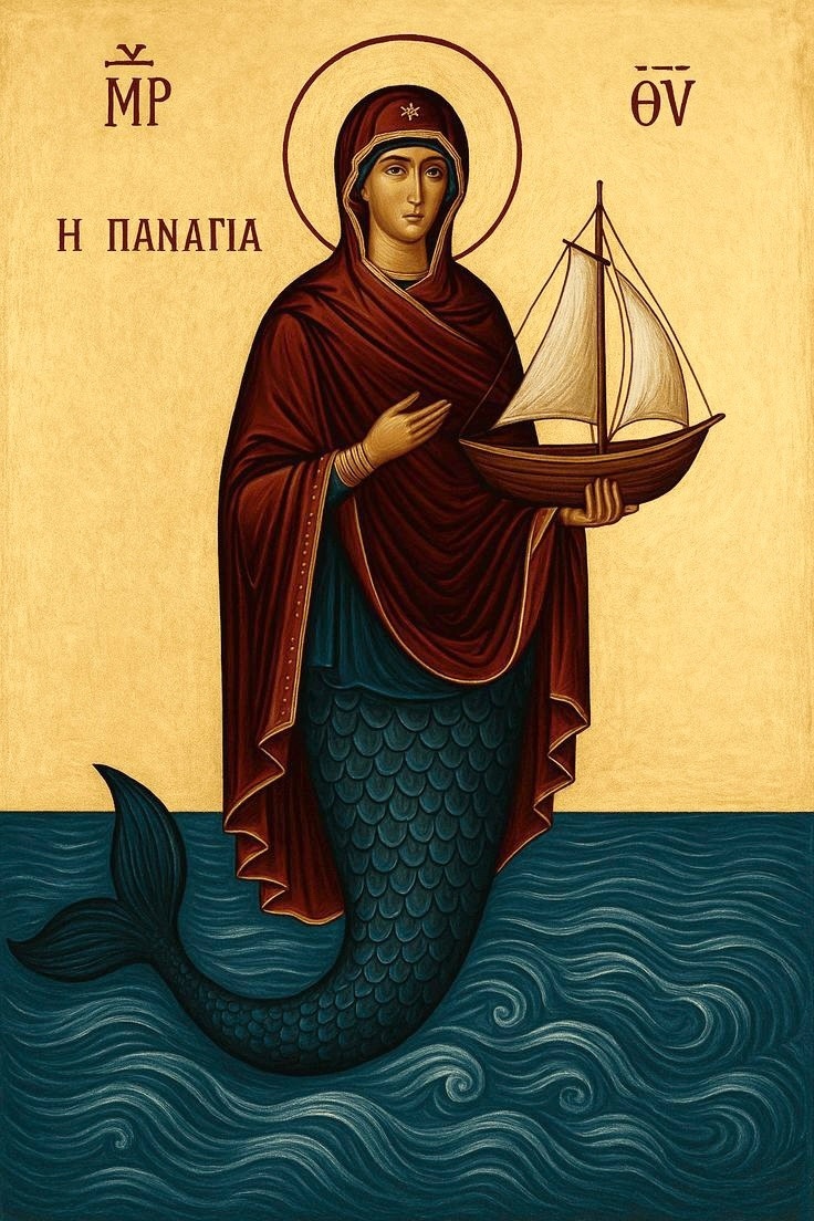 Греческий писатель Миривилес написал поэму «Богоматерь-русалка». В ней он описывает жизнь в рыбацкой деревушке на одном из греческих островов.