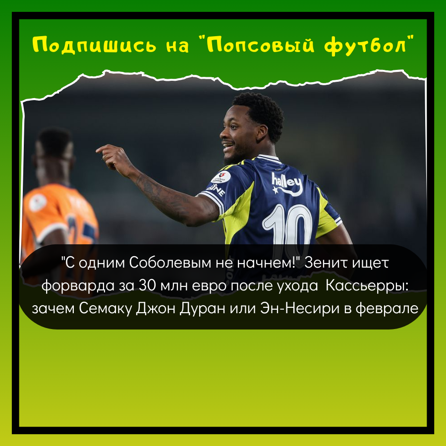 "С одним Соболевым не начнем!" Зенит ищет форварда за 30 млн евро после ухода Кассьерры: зачем Семаку Джон Дуран или Эн-Несири в феврале