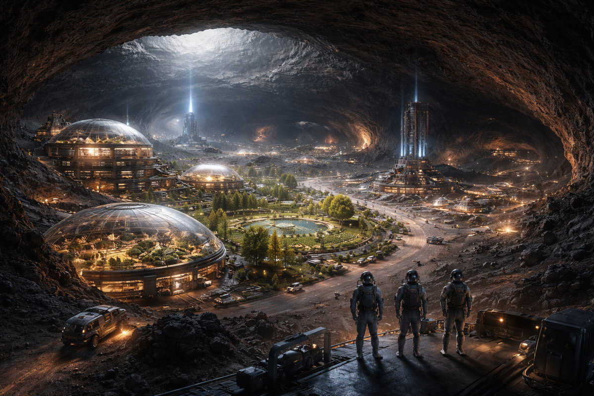 Реальность космической инженерии и физики, как ни парадоксально, уходит не вверх, а вниз. Всё больше учёных, инженеров и космических агентств сходятся во мнении: первые устойчивые колонии за пределами Земли, скорее всего, будут подземными.