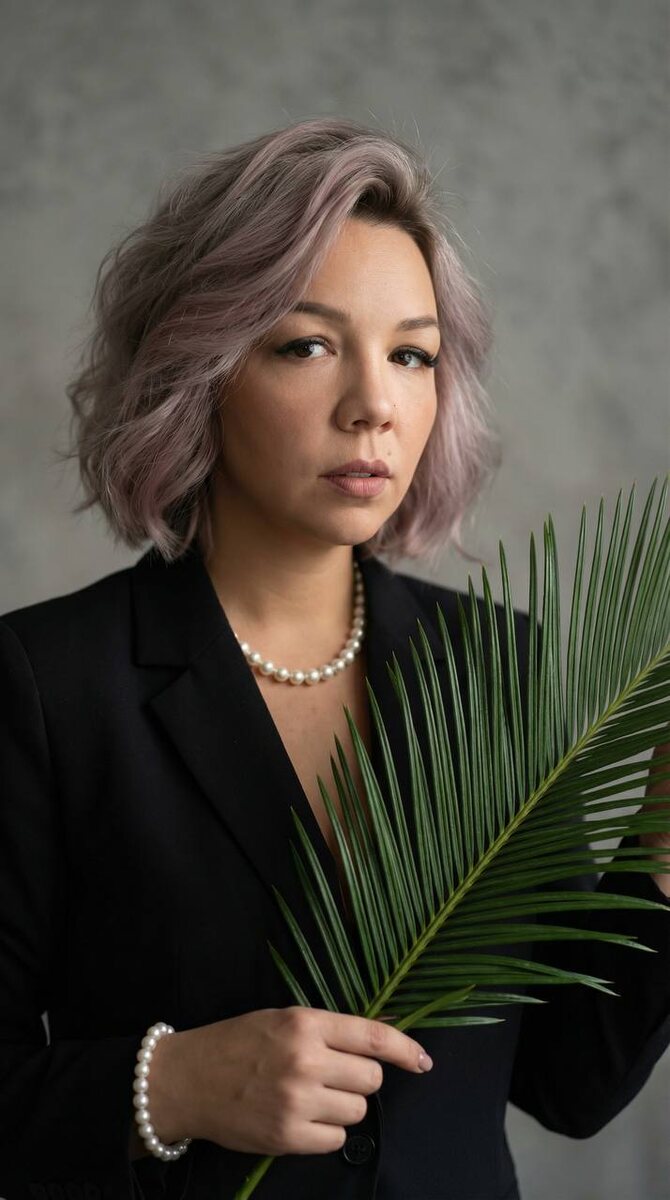 👇🏻 🌟Переходим на удобный сервис для генерации: Ссылка 👉 Syntx Ai Ссылка 👉 Veo3 📌ИНСТРУКЦИЯ ПО ИСПОЛЬЗОВАНИЮ В ЗАКРЕПЛЕННЫХ СООБЩЕНИЯХ ◾️ПРОМТ : Создай изображение меня. Не меняй черты лица. Максимально сохрани мою внешность. Fashion-art фотосъёмка 2025 года. Я в чёрном костюме . Прическа: волосы цветом как на фото, короткие, но густые, с объемом у Корней . Безупречная кожа .Серый фон, в руках большой зелёный лист пальмы Камера Canon EOS R6 + RF 85mm f/1.4, настройки: f/2.0, ISO 100, 1/500. Свет мягкий, рассеянный, с акцентом на лице и деталях образа. Атмосфера загадочная, стильная и дерзкая. Фокусировка на глазах и аксессуарах: жемчужное ожерелье и браслет Стиль: fashion, кинематографичный портрет, эстетика 2025.