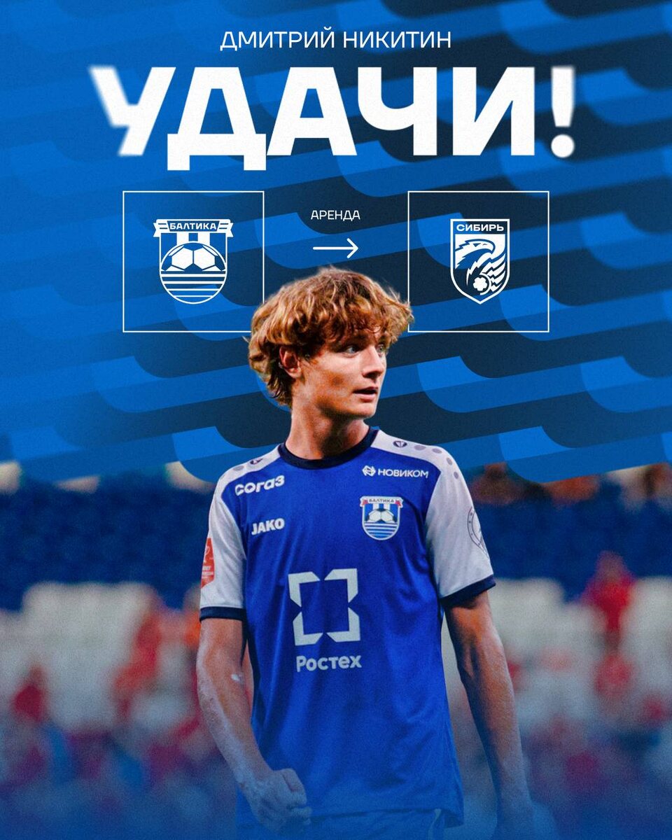 Футбольные клубы «Балтика» и «Сибирь» достигли договорённости об аренде нападающего Дмитрия Никитина до конца сезона 2025/26. Дмитрий пополнил ряды Балтийцев в июне 2023 года. Свои выступления он начал в команде «Балтика-М», за которую провёл 38 матчей, забил 3 гола и отдал 8 результативных передач. Следующим шагом стал переход в «Балтику-2», где игрок продолжил демонстрировать уверенную игру, в особенности выделяясь в борьбе на втором этаже. В 27 матчах за вторую команду он отметился 10 забитыми мячами и 3 голевыми передачами. Дебют Никитина в основной команде «Балтики» состоялся 24 мая 2025 года в матче против тульского «Арсенала». Всего за главную команду калининградец провёл 5 матчей, в которых не отличился голевыми действиями. Желаем Диме реализации своего потенциала, полезного игрового опыта и новых вершин!