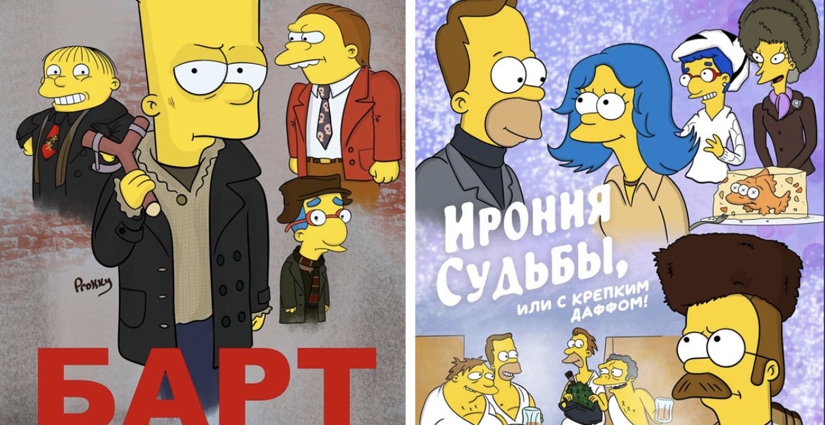 И здесь художник проявил в полной мере свое остроумие и талант. Он решил создать пародии на всеми любимые советские фильмы в духе Симпсонов. Слегка изменив названия, он написал краткие сюжеты к своим оригинальным рисункам. Смотрите и наслаждайтесь!