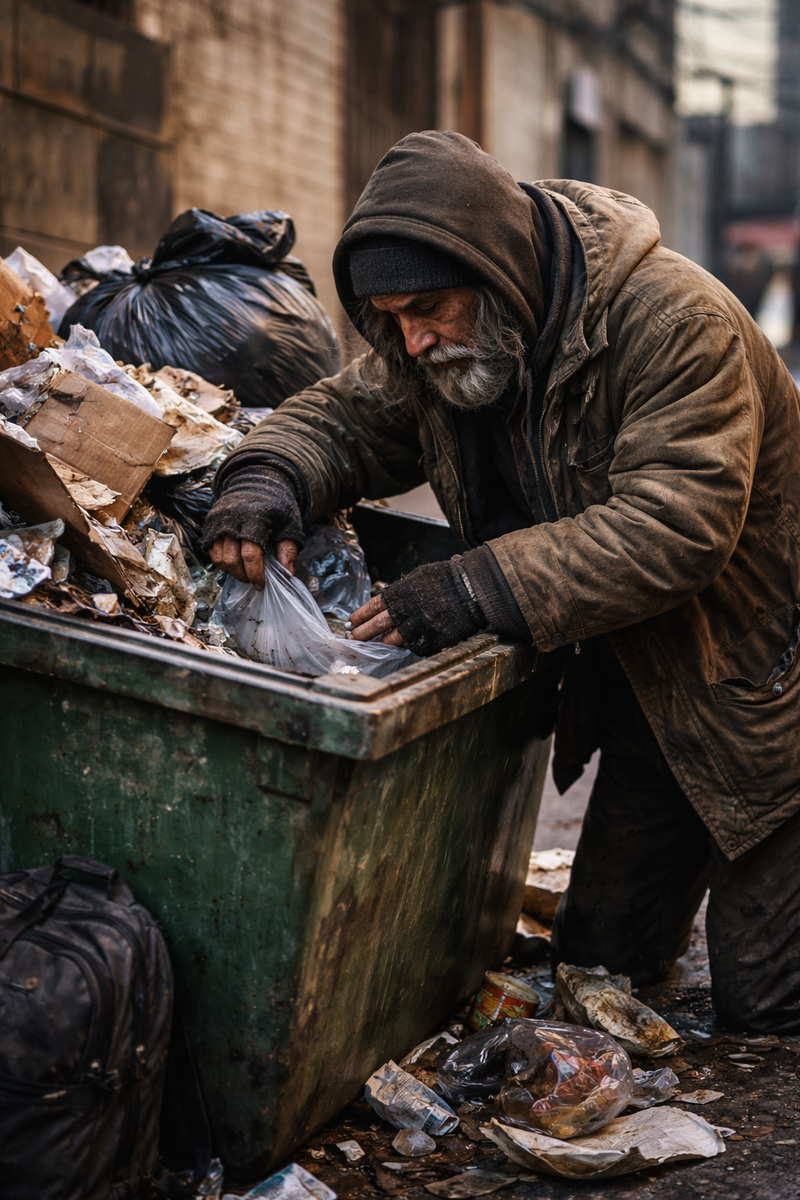 Утро только начиналось, и солнце еле пробивалось из-за нависших туч, а бомж Андрей уже крутился возле мусорных баков. Он методично осматривал каждый контейнер, надеясь найти, не только еду, но и что-нибудь из того, что потом можно было сдать за деньги. Из подъезда вышла женщина, у неё в руках был черный пакет. Подойдя к мусорным бакам, она расплылась в улыбке «Андрей, ты никак всё клад пытаешься найти?»
