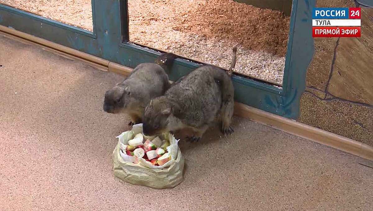 Спит как сурок – про тульских байбаков (это степные сурки) так не скажешь. В природе эти зверьки впадают в спячку на 9 месяцев и просыпаются в феврале – начале марта. Наши уже в январе вовсю бодрствуют. «У нас они спят приблизительно недели две, бывает три. Могу выйти из спячки посреди этого процесса, а потом снова засыпают. Это связано с температурными изменениями и с тем, что гормональный фон у них все-таки другой, чем у сурков, живущих в дикой природе», – пояснил экскурсовод Тульского экзотариума Алексей Бочкарев. Сурки Наташа и Сережа стали олицетворением смены времени года. Все благодаря традиции Дня сурка. Корни праздника — в Древнем Риме, где 2 февраля, это время между зимним и весенним солнцестоянием, отмечали День ежа. Его будили, и если он вылезал из норки, то весна будет ранней. На американском континенте ежей не встретили, символом праздника сделали сурков. Забавную традицию решили зародить в Тульском экзотариуме, выманивая сурков едой. «Если стесняются выходить, вышли-зашл