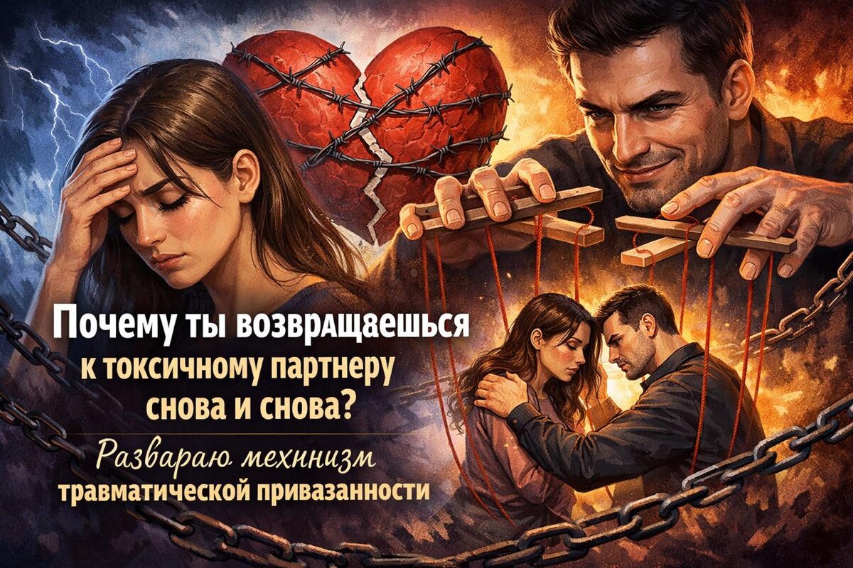 ЧАСТЬ 1 Ты знаешь, что отношения разрушают. Понимаешь, что надо уходить. Но не можешь. Возвращаешься снова. Прощаешь снова. Веришь обещаниям снова. И каждый раз думаешь: "Что со мной не так? Почему я такая слабая?" Но дело не в слабости. Дело в травматической привязанности - это нейробиологический механизм, который держит тебя в токсичных отношениях крепче любой логики. Сейчас объясню, как это работает и что с этим делать. Как работает травматическая привязанность Представь: ты в отношениях с человеком, который то горячий, то холодный. Сегодня он любит тебя, обнимает, клянется в верности. Завтра игнорирует, обесценивает, уходит в себя. Твой мозг в этот момент переживает цикл "боль-облегчение-боль": 1. Боль - он холодный, игнорирует, критикует 2. Тревога - ты в панике, пытаешься вернуть его внимание 3. Облегчение - он возвращается, дает тепло и любовь 4. Эйфория - дофаминовый взрыв в мозге Этот цикл создает зависимость. Буквально химическую. Потому что непредсказуемая награ