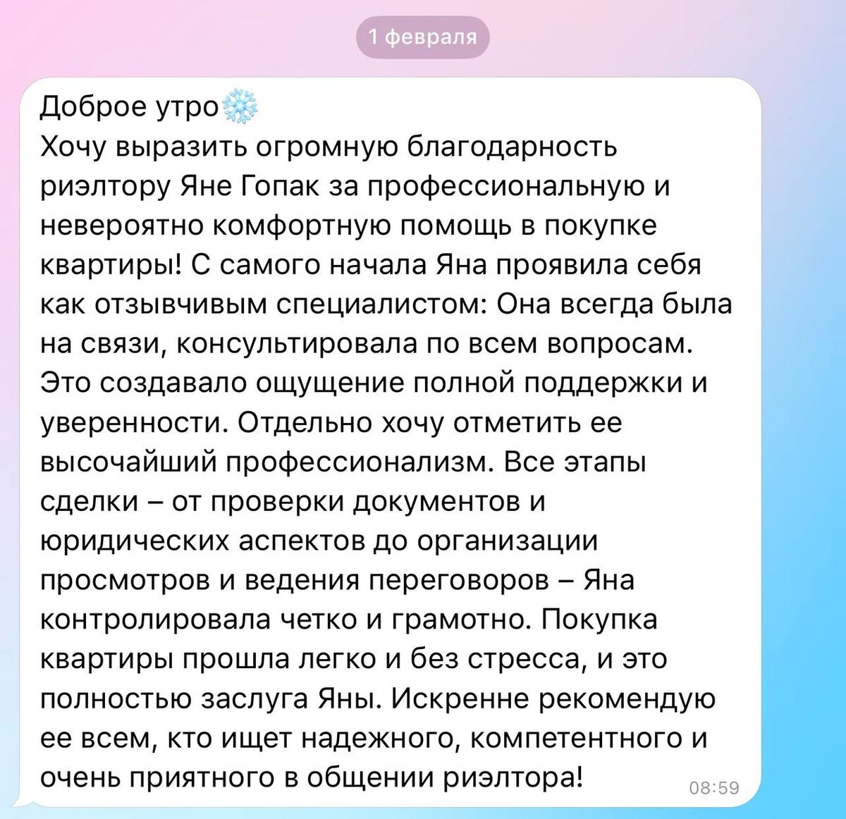 ? В целом, многие коллеги подтвердили, что январь 2026 был намного активнее чем январь 2025. Изменения по семейной ипотеке «засуетили рынок» Самые интересные кейсы: А101, Новая Москва - кредит 12 млн с пв 20% Согласована скидка 5% (~более 500тыс) 1ДСК, Москва внутри МКАД - кредит 12 млн с пв 37% Согласована скидка 2% (~более 370 тыс ) Готовый дом с зу от застройщика ИП- КОМБО Семейка. кредит 22,4 млн с пв 50% В последнее время, стала активнее просить отзывы на свою работу и вот один из них уже прилетел ❤️ #кейсыклиентов _____ 💬 - @yana_w 💬 - @yanagopak 💬 - https://max.ru/id235622052696_biz