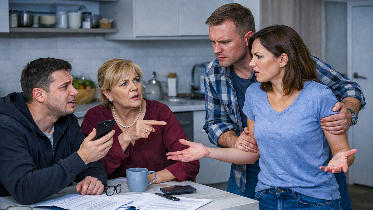 Людмила Петровна прошла на кухню, села на стул тяжело, устало. Борис стоял у окна, нервно теребил ремень на джинсах. Оксана поставила чайник, достала чашки. Атмосфера давила — тяжёлая, напряжённая. Свекровь молчала, сжимала губы в тонкую линию. Деверь смотрел в окно, избегая взгляда невестки.
