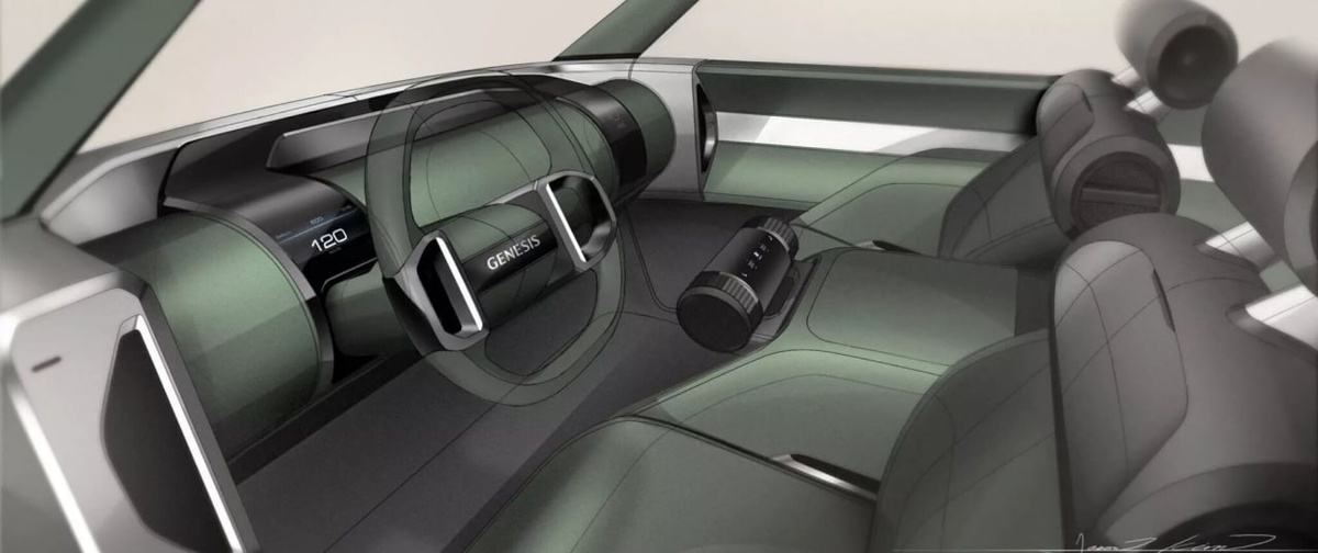 новыми продуктами. Эскизы по крайней мере трех из них, выполненных в студии дизайна Genesis под руководством прославленного дизайнера автомобилей Люка Донкервольке, раздобыло и опубликовало итальянское издание Auto&Design. Под маркой Genesis никогда не выпускали минивэны. Однако на одном из эскизов отрисован автомобиль именно такого типа, проект носит наименование Jet on Wheels — в буквальном переводе «частный самолет на колесах». Обтекаемая вытянутая и округлая в поперечном сечении форма кузова минивэна действительно напоминает фюзеляж гражданского авиалайнера. Перспективный минивэн Genesis будет ориентирован в первую очередь на рынок КНР. Кроссоверы по-прежнему остаются локомотивом продаж автоиндустрии, и проект полноразмерного вседорожника с посадочными местами в три ряда под названием Genesis JH демонстрирует направление, в котором может быть расширен ассортимент SUV марки Genesis. Здесь обращают на себя внимание непривычная форма и расположение фирменной радиаторной решетки Gene