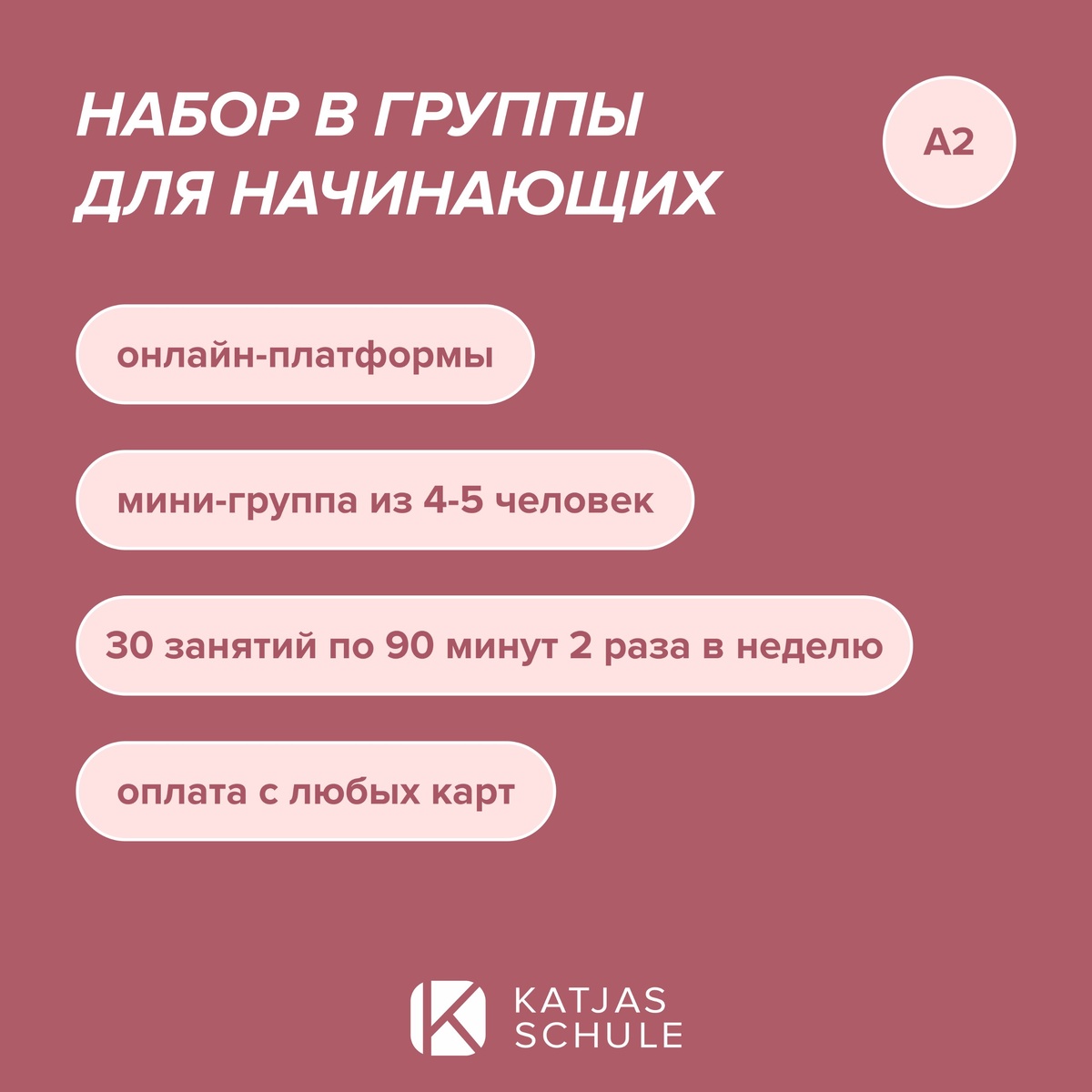 ◀️Расписание: ▫A2.1 понедельник, четверг, 20:00 ▫А2.2 вторник, четверг, 21:00 Время московское ◀️Чему научитесь по завершении курса: ▫Понимать отдельные предложения и самые частотные слова по важным для вас темам (о себе/семье, профессии, быте). ▫Улавливать смысл коротких простых сообщений и объявлений. ▫Читать короткие простые тексты. ▫Находить конкретную информацию (объявления, брошюры, меню, расписания). ▫Понимать короткие личные письма. ▫Участвовать в бытовых разговорах в повседневных ситуациях. ▫Вести короткие личные беседы. ▫Простыми фразами описывать семью и людей, рассказывать об образовании и работе. ▫Писать короткие простые заметки и сообщения. ▫Писать простое личное письмо (например, благодарственное). ◀️Стоимость (30 занятий) – 33 400 ₽; возможна оплата 2 частями, с любой карты Подробно про уровни читайте здесь, а ещё у нас есть тест, который поможет определиться с группой. Но если вы раньше совсем никак не соприкасались с языком, ждем вас на курсе А1.1 🥰 Для записи пи