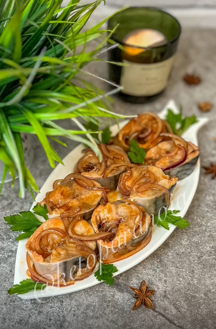 Очень жду от вас ❤️❤️❤️ и обратную связь 💬, ведь я для вас очень стараюсь! Это настолько вкусно, что теперь она у нас на столе постоянно. Самое главное, что тут почти ничего не надо делать активно. Нарезал рыбку, лук, смешал маринад и всё! Залил, убрал в холодильник и забыл на сутки. А потом достаешь, и... ммм, это просто что-то. Рыбка получается такая нежная! Это идеальный вариант и для будней, и для праздников. Автор 🎥 ketoparanoia Состав: 🐟Скумбрия 2 шт 🧅Лук репчатый 2 средних головки 🥄Масло оливковое 80 мл 🥄Уксус яблочный 30 мл 🥫Томатная паста б/с 60 г 💧Вода 350 мл 🧂Соль 1 ст л 🥄Перец горошком 1 чл 🧄Чеснок сушеный 1 чл 🥄Сахзам щепотка 🥄Копчёная паприка 1/2 чл 🥄Кориандр 1 чл Приготовление: 1 У подмороженной рыбы отрезать голову, хвост, срезать плавники, удалить внутренности, промыть. Порезать на кусочки, шириной 2 см. 2 Лук порезать полукольцами. 3 В кастрюлю налить воду, добавить соль, сахзам, перец, томатную пасту, специи, масло. Довести до кипения, прокипятить