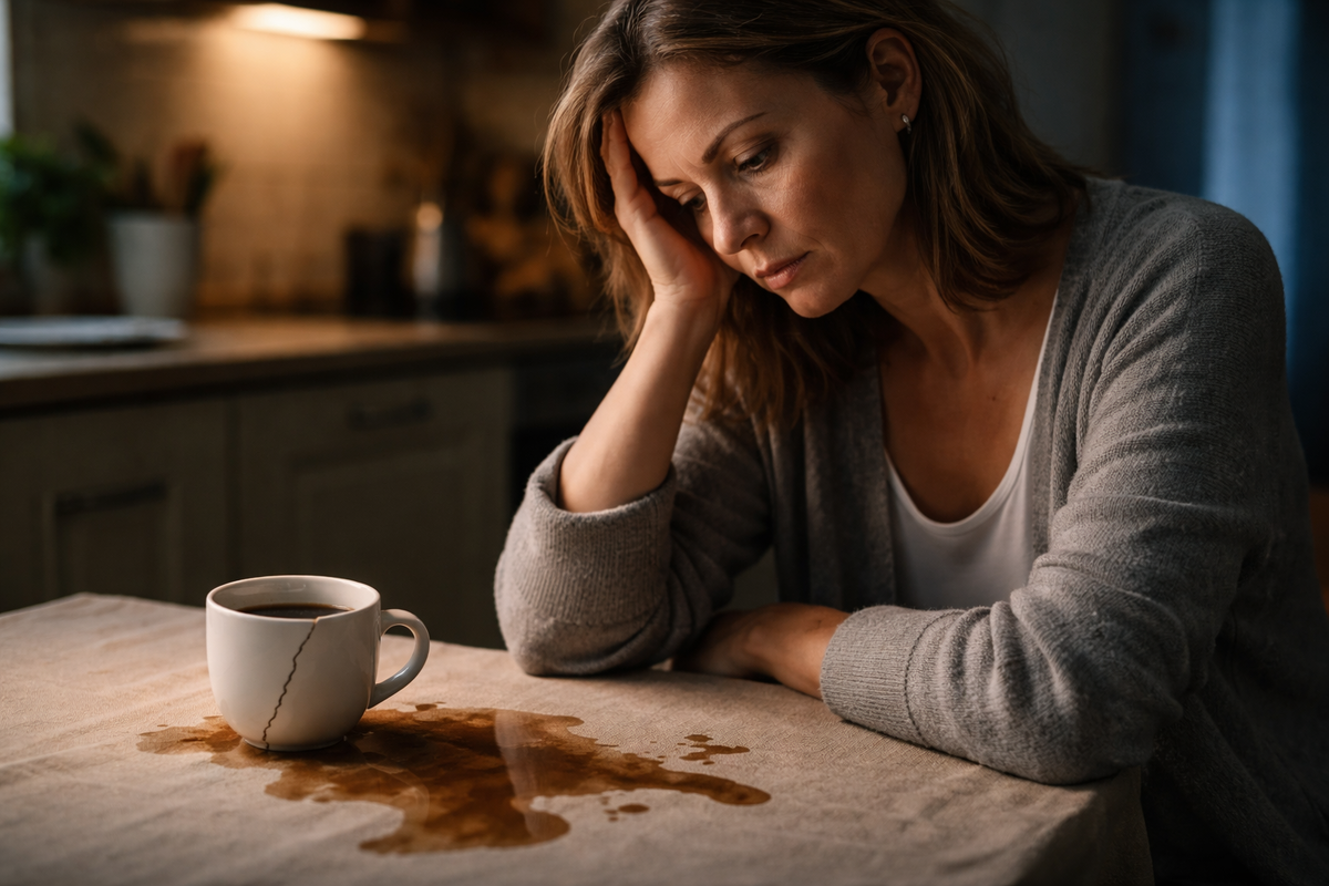 Чашка треснула, когда я поставила её на стол. Тонко, почти вежливо. Я даже не сразу поняла, что звук — от фарфора, а не от меня. Кофе пополз по скатерти, оставляя бурое пятно — неровное, без формы, как жизнь, в которой давно нет маршрута.