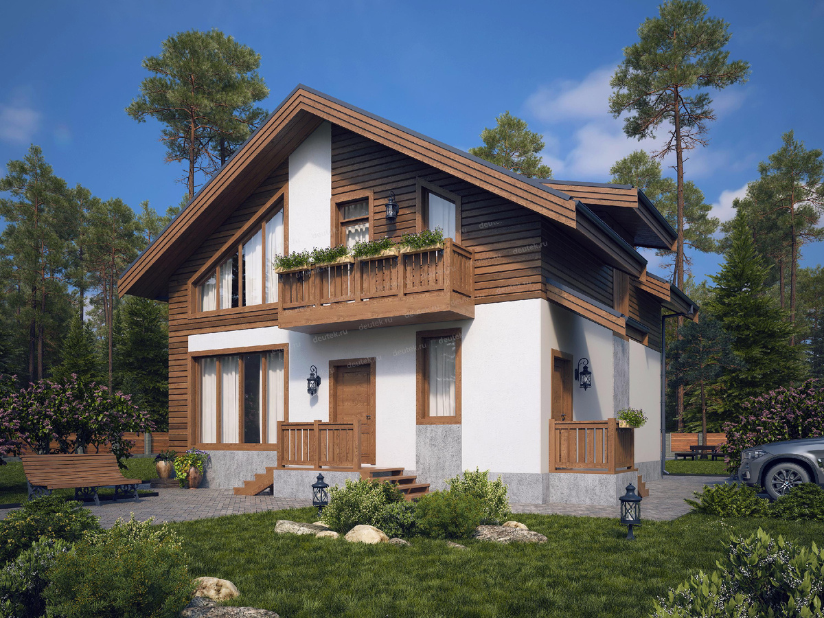 Номер проекта: DTE3 Разделы проекта: Архитектурный и Конструктивный разделы Заказать проект можно на сайте deutek.ru или по телефону +7 (495) 175-30-40 Другие проекты можете посмотреть в этом разделе https://zen.yandex.ru/proektirovaniedomov Современный горожанин, мечтающий о собственном доме, видит идеальное жилище красивым, функциональным и удобным для жизни, несложным в возведении и эксплуатации. Возможно, таким, как этот каркасный мансардный коттедж в европейском стиле, общей площадью 146 м2. Он спроектирован для небольшой семьи, отличается компактностью и выраженным ощущением гармонии и уюта. Для будущих хозяев предусмотрено 3 спальни, двусветная гостиная с камином, два санузла, отдельная постирочная и выделенное помещение котельной. На первом этаже открытая дневная зона из двусветной гостиной и кухни-столовой. Интерьер без стен и потолка дарит ощущение пространственности и свободы; этот эффект усиливают большие боковые окна. Также на первом ярусе запланирована спальня, кладовая,