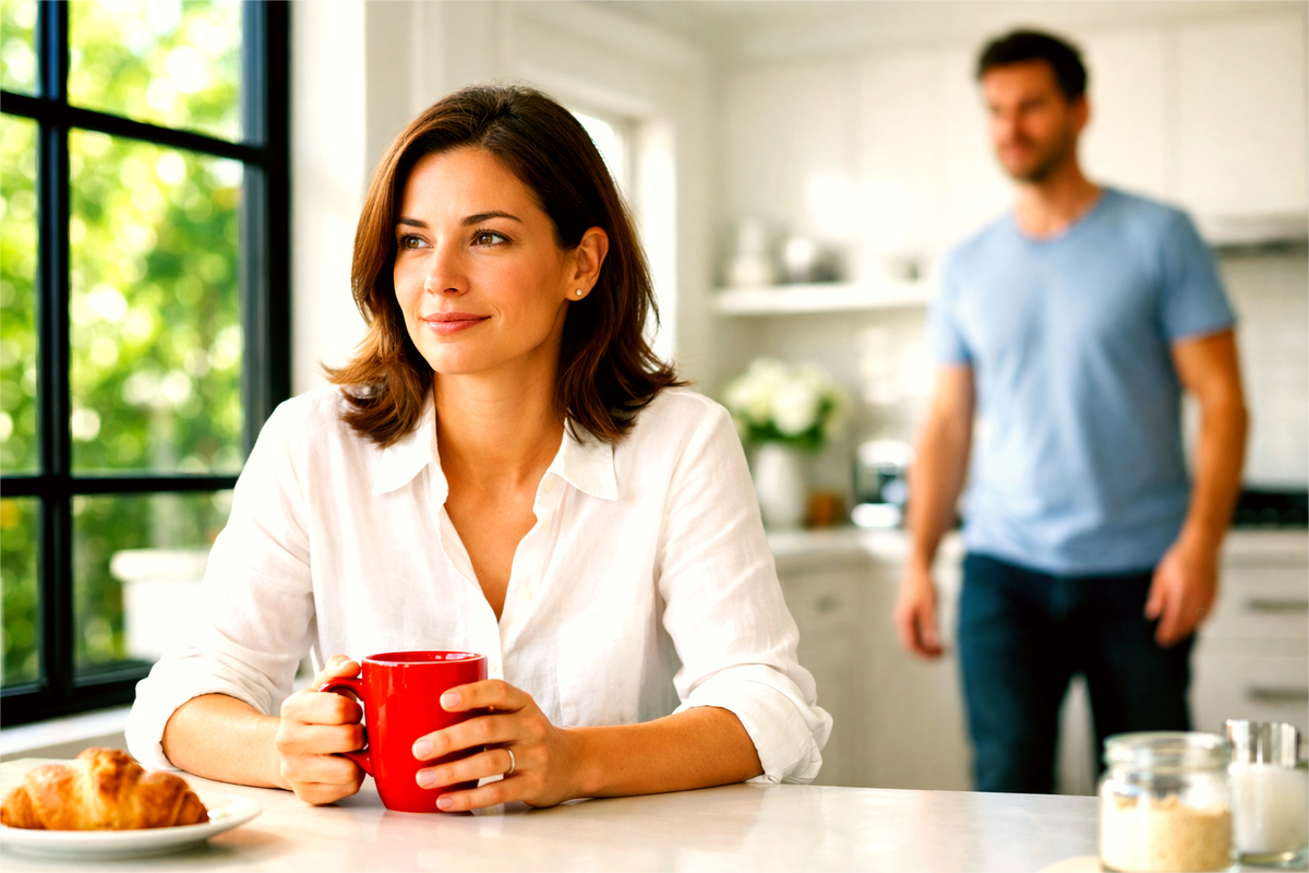 — Доброе утро, — сказала я, отодвигая ему чашку. Голос был ровным, бытовым. — Как командировка? Успел всё решить?