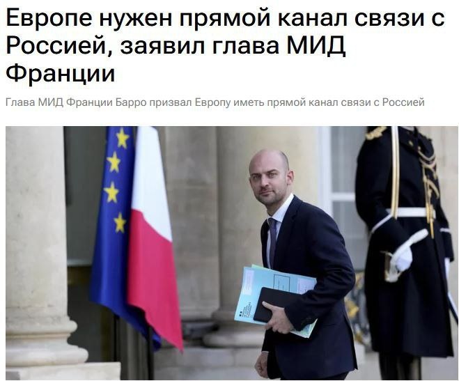 ". Глава МИД Франции Жан-Ноэль Барро заявил, что европейские страны должны иметь возможность общаться с Россией напрямую, без посредников. Он подчеркнул, что это необходимо для отстаивания интересов Европы в контексте поддержки Украины. Министр отметил, что Париж никогда не отказывался от контактов с Москвой, но они должны быть прозрачными как для Украины, так и для ее европейских союзников. Представитель Кремля Дмитрий Песков добавил, что Владимир Путин готов к восстановлению связей, при этом встречи президентов должны быть направлены на понимание позиций друг друга. В июле Путин и Макрон провели первый за три года телефонный разговор, обсудив актуальные международные вопросы и договорившись о поддержании контактов для координации позиций по Ближнему Востоку Lesen Sie weiter unten auf Deutsch...