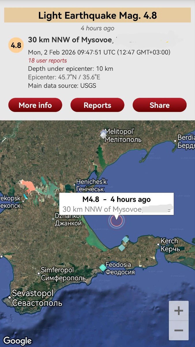 Немного комментариев по ощутимому событию в Азовском море М4.8 сегодня