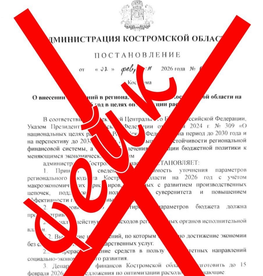 Документ содержит ошибки и не опубликован на официальных ресурсах, стало известно Logos44.ru В социальных сетях вновь распространяют фейковые документы. В этот раз злоумышленники тиражируют поддельное постановление администрации Костромской области, которое якобы утверждает изменение бюджета региона на 2026 год. Документ составлен с явными ошибками и не соответствует нормам делопроизводства. Постановление не опубликовано на официальном ресурсе правовых документов, где размещены все нормативно-правовые акты, имеющие законную силу. Дата написана тем же почерком, что и другие фейковые постановления, датированные от руки. Более того, номер документа не соответствует заявленной дате — на 2 февраля в регионе регистрируются документы, далеко опережающие указанный порядковый номер. Жителей Костромской области просят не доверять непроверенной информации и использовать только официальные источники.