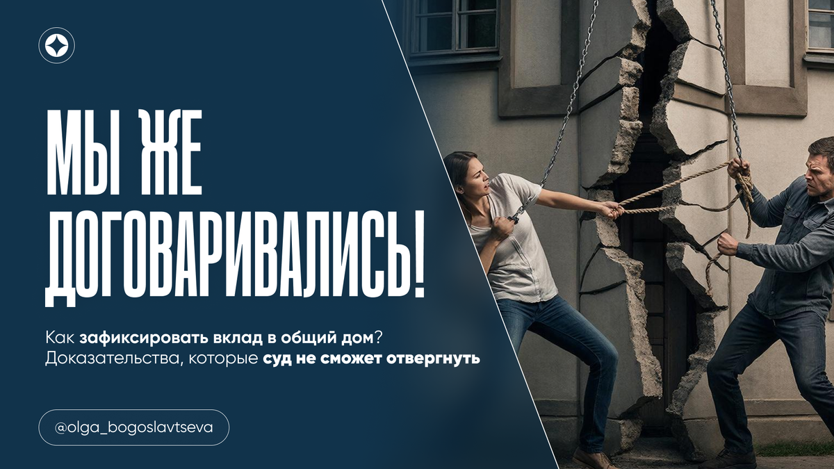 По моей личной статистике почти каждый второй конфликт вокруг дома или квартиры начинается одинаково. с ситуации, где казалось, что все достаточно крепко: деньги вкладывались, работы оплачивались, дом строился или ремонтировался вместе! Но потом внезапно выясняется: юридически вклад как будто бы не существовал... И в итоге не существовал вовсе! В этот момент люди впервые сталкиваются с жесткой реальностью судебной практики, где суд не анализирует, кто и сколько старался, он проверяет, что именно можно доказать и чем. И вот здесь начинаются потери, которых можно было избежать. Сегодня поговорим о таких потерях. А перед началом я попрошу Вас, дорогой читатель, быть всегда бдительным к тем аспектам, о которых я расскажу ниже. Возможно, когда-то мой материал поможет Вам избежать потерь. В профессиональной среде есть простое правило: вклад существует только тогда, когда он оставил документальный след и привёл к измеримому результату. И ни совместное проживание, ни устные договорённости, н