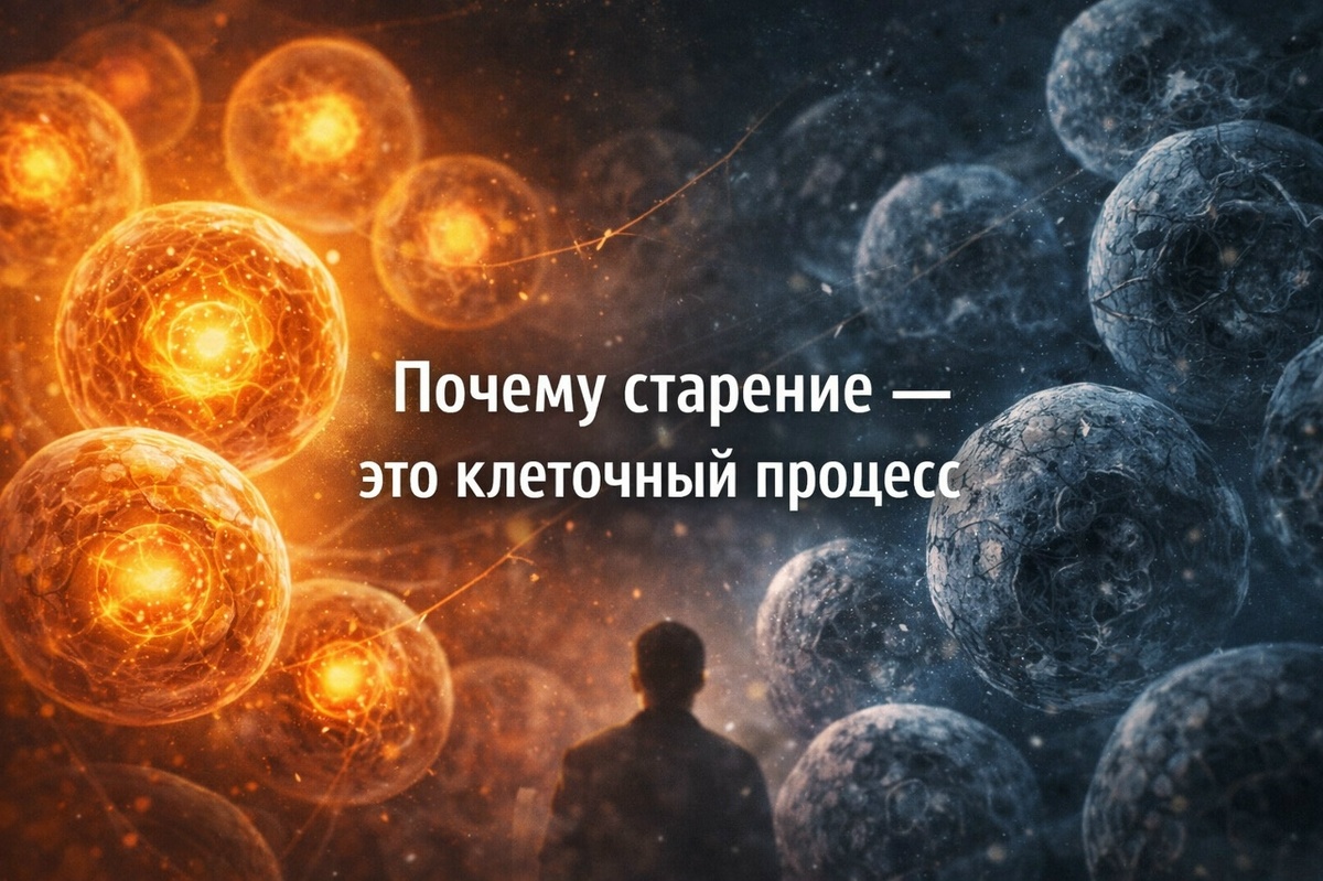 Сейчас я вам скажу одну вещь. Простая для понимания на самом деле, вот только не для принятия. Старение — это не свойство клетки. Старение — это свойство многоклеточного организма. Одноклеточные почти не стареют в привычном смысле. Они делятся — и всё. Проблемы начинаются тогда, когда появляется специализация клеток, ткани, органы, координация миллиардов элементов. И вот тут возникает компромисс, о котором чуть ниже.
