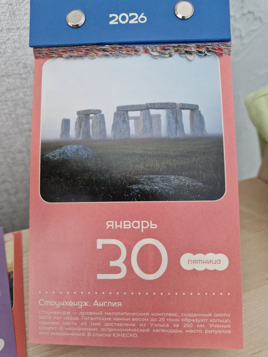 столицы Великобритании. Это один из самых известных археологических памятников мира, состоящий из большого круга каменных глыб. Строительство Стоунхенджа можно разделить на три основных этапа: Первый этап (~3000 г. до н.э.) — Строительство начиналось с создания круглого земляного вала диаметром около 100 метров, окруженного рвом. Второй этап (~2500 г. до н.э.) — Этот период характеризуется началом транспортировки огромных сарсеновых камней из каменоломен Мальборо-Даунс, расположенных примерно в 30 км от Стоунхенджа. Эти массивные блоки весом до 50 тонн устанавливались в вертикальном положении, образуя внешний круг, а также создавали внутренние трилиты - структуры из двух вертикальных камней с горизонтальной перемычкой сверху. Третий этап (~2000 г. до н.э.) — Во время третьего этапа добавлялись голубые камни (долерит), привезённые издалека, возможно, даже из Уэльса, на расстояние почти 250 километров. Голубые камни располагались внутри внешнего круга сарсеновых камней, создавая внутренн