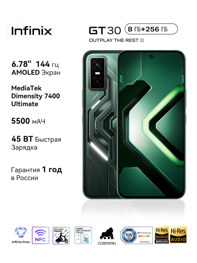 Приобрести на Яндекс.Маркете https://market.yandex.ru/cc/8gyxNw Infinix GT 30 8/256GB Shadow Ash (серый) — это свежий игровой смартфон среднего сегмента 2025 года (анонс конец 2025 – начало 2026), который в 2026-м уже стал одним из самых выгодных предложений в ценовом диапазоне ~280–380 €. Это прямой конкурент Poco X7 Pro, Realme GT Neo 6 SE, Redmi Turbo 4 и Galaxy A36, но с более агрессивным игровым дизайном, мощным охлаждением и крутым экраном. Выглядит агрессивно, но не кричаще — отлично подходит для тех, кто хочет геймерский вайб, но не «новогоднюю ёлку». Плавность, цветопередача и яркость — на уровне флагманов 2024–2025 годов. В играх и при прокрутке — просто шёлк. AnTuTu ~1.6–1.75 млн (2026 год)
