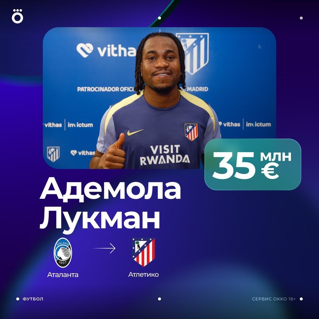Адемола усилит банду Симеоне. По данным СМИ, сумма сделки составила €35 млн евро, плюс бонусы в размере €5 млн. Контракт — до 2030 года. Помним хет-трик в финале Лиги Европы ☝🏻 😃 Смотри Okko прямо сейчас!