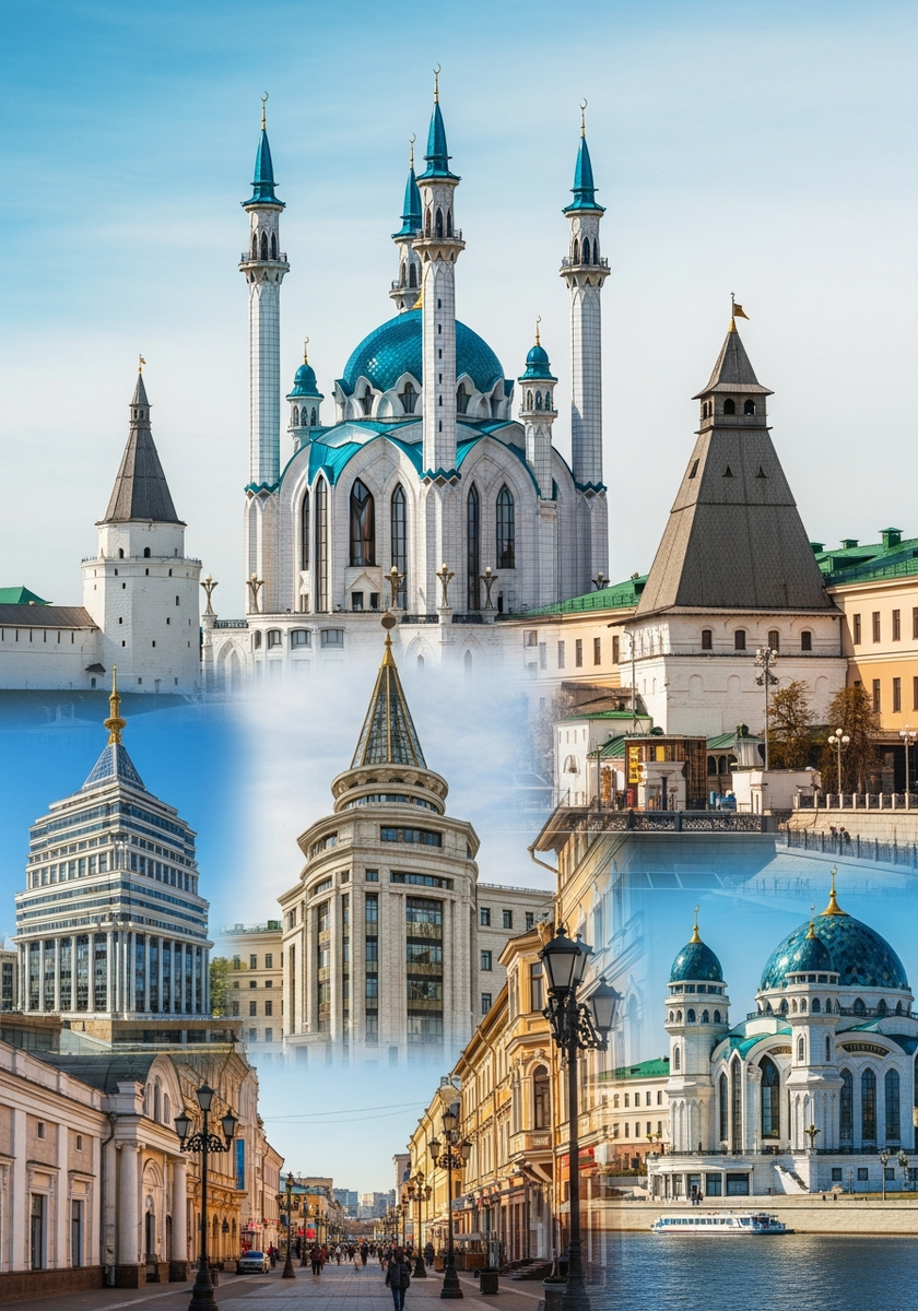 Кремль возник как укрепление Казанского ханства, а после взятия города войсками Ивана Грозного был перестроен псковскими мастерами. На территории сохранились падающая башня Сююмбике, мечеть Кул-Шариф, Благовещенский собор и Президентский дворец. По одной из легенд, башня названа в честь царицы Сююмбике, которая бросилась с нее, не желая покоряться завоевателям.