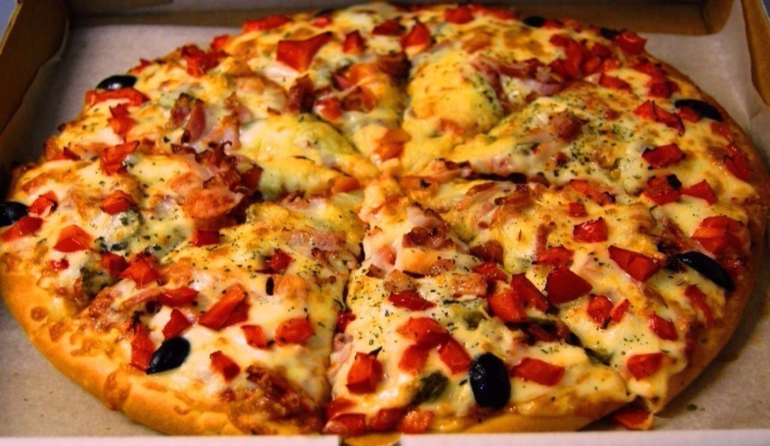 Растворить сухие дрожжи в воде комнатной температуры, перемешать и оставить на 10-15 минут. Муку и 1/2 ч. ложки соли высыпать в большую миску горкой. Сделать в муке углубление и добавить в него разведенные дрожжи и оливковое масло. Всё тщательно перемешать и выложить на поверхность, присыпанную мукой, вымесить тесто, оно должно стать мягким и эластичным. Положить тесто в миску смазанную маслом, накрыть пищевой плёнкой или полотенцем и оставить в теплом месте подходить приблизительно на 1 час (тесто должно увеличится примерно в 2 раза). Готовое тесто разделить на 2 порции, раскатать нужную форму. Смазать кетчупом или выложить помидоры, положить начинку, присыпать сыром и в духовку запекать при температуре 240 С примерно 15-20 мин. Приятного аппетита!
