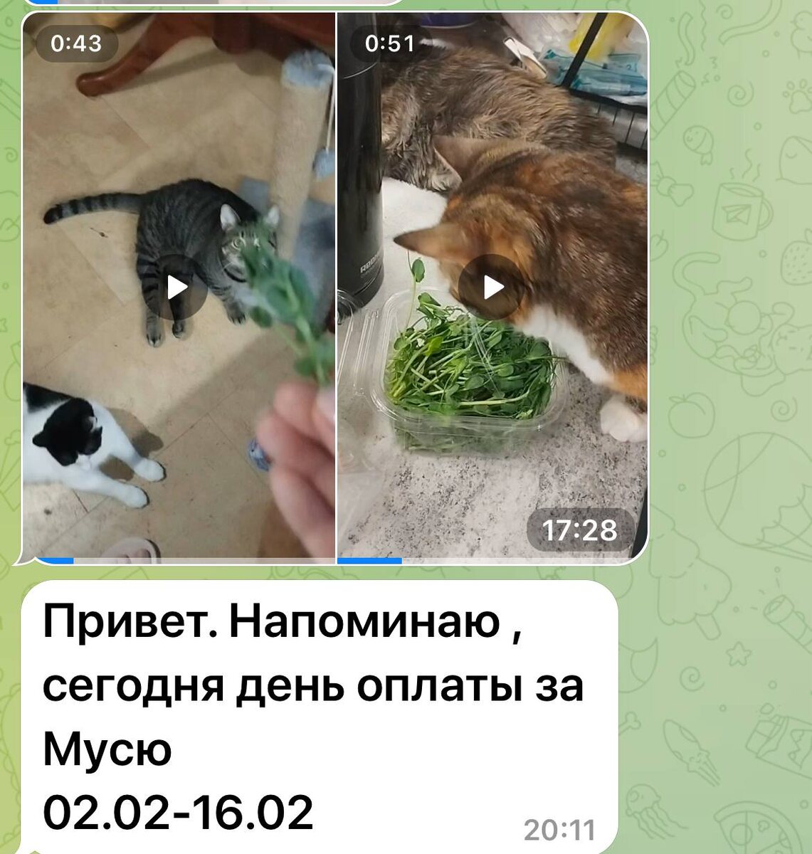 ❤️ Сегодня день оплаты за передержку Муси Оплачиваю два раза в месяц по 12.000 рублей ! Время летит и вот снова день оплаты. Немного приветиком от нашей прекрасной особенной кошечки Муси😻❤️ Буду вам благодарна за помощь в сборе средств на оплату передержки до 16.02.26 включительно Если вы хотите помочь , при переводе оставляйте комментарий⤵️ «БЛАГОТВОРИТЕЛЬНОСТЬ» Т- банк 2200701901051810 Райфайзен 2200300504041300 Сбербанк 4276550098163119 Все привязаны к номеру телефона +7(981)706-83-99 Петрова Анна Викторовна