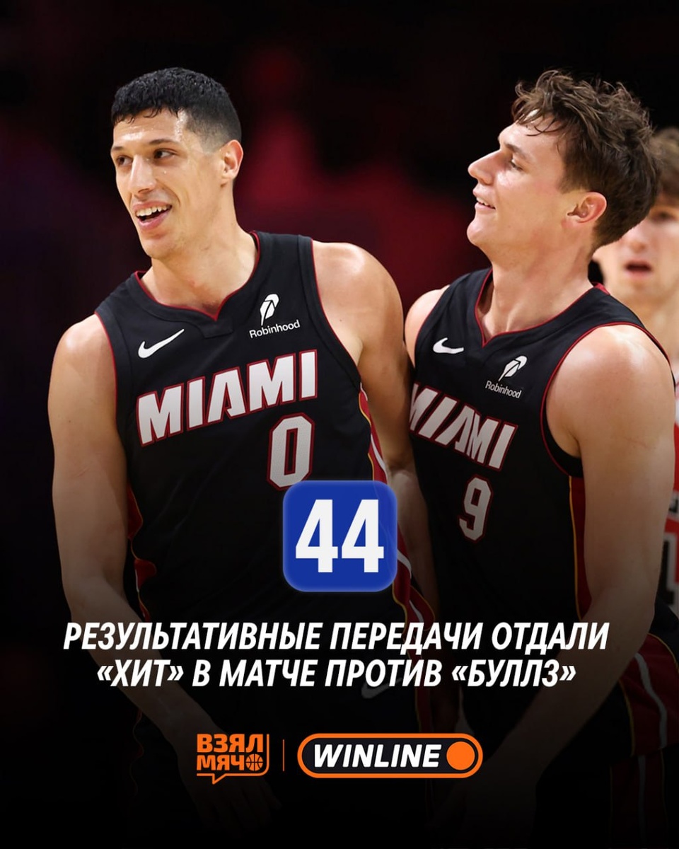 «Хит» выдали 44 результативные передачи в матче против «Чикаго» — это новый рекорд клуба. Предыдущее достижение (42) держалось с игры против «Лейкерс» в 2024 году. Сразу 13 игроков «Майами» отметились результативными передачами. Лидером стал новичок Каспарас Якучионис (9), по 6 передач добавили Дрю Смит и Дэвион Митчелл, ещё 1 ассист записал на свой счёт Влад Голдин. По ходу встречи «Хит» вели +54 — второй самый крупный перевес в истории клуба. Итог — 134:91 и вторая победа «Майами» над «Чикаго» в трёх матчах за четыре дня. Сегодня Влад подключится к прямому эфиру Доброго вечера и расскажет о своих эмоциях после первых набранных очков в НБА 👌 🏀 ПОДПИШИСЬ — ЗДЕСЬ ЖИВЁТ БАСКЕТБОЛ!